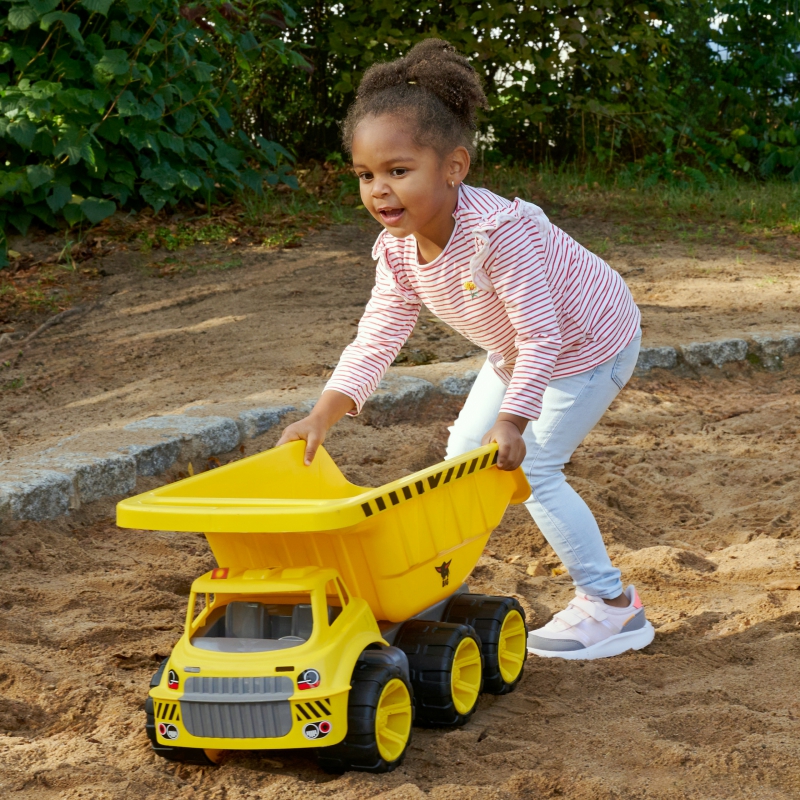 Prekės ženklo BIG savivartis Power Worker Mega yra žaislas aktyviems vaikams. Šis savivartis, sukurtas atsižvelgiant į mažas rankas, yra didesnis nei bet kada anksčiau ir pranoksta visus lūkesčius dėl savo didžiulės savivartės lovos. Juo galima gabenti visų rūšių krovinius, nesvarbu, ar tai būtų smėlis, vanduo ar kiti žaislai.